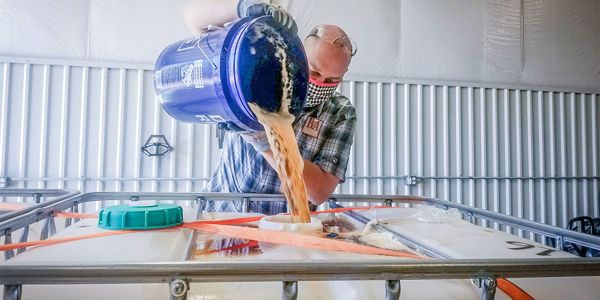 On a sunny Tuesday in April, tucked away in a mixed-use area of Boulder County, masked volunteers are busy dumping beer. Inside a warehouse, five tables flank a path to a trailer with large, industrial plastic totes. Adam Dulye banters with his team of volunteers like he would with his kitchen staff.